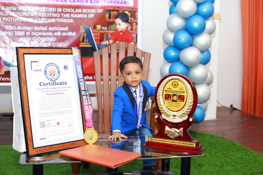 இலங்கையைச் சேர்ந்த 03 வயது சிறுவனொருவன் 1098 உருவப் படங்களை அடையாளம் காட்டி அவற்றின் பெயர்களை மனப்பாடம் செய்து கூறி சோழன் உலக சாதனைப் படைத்துள்ளார்.